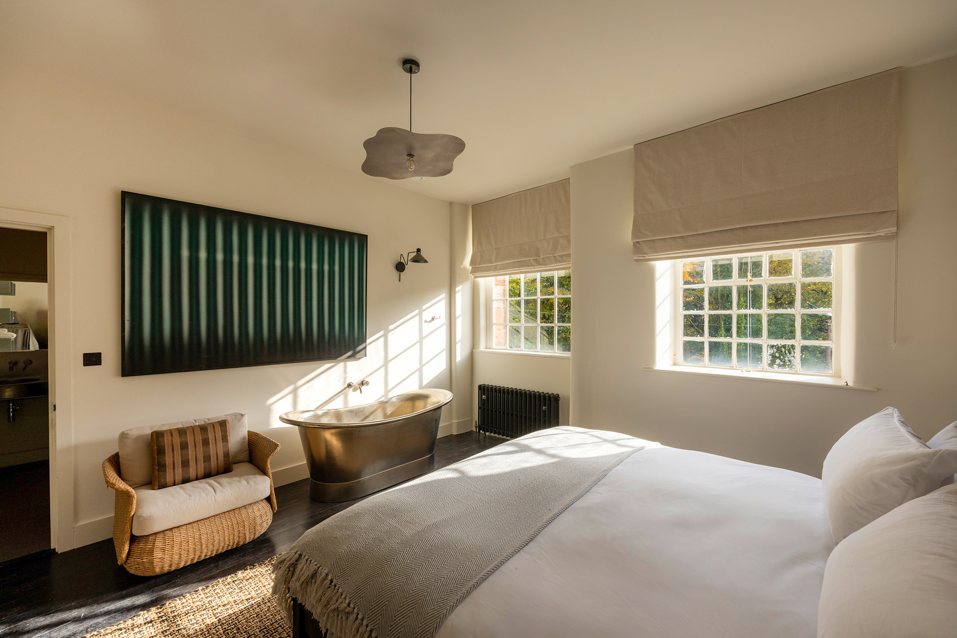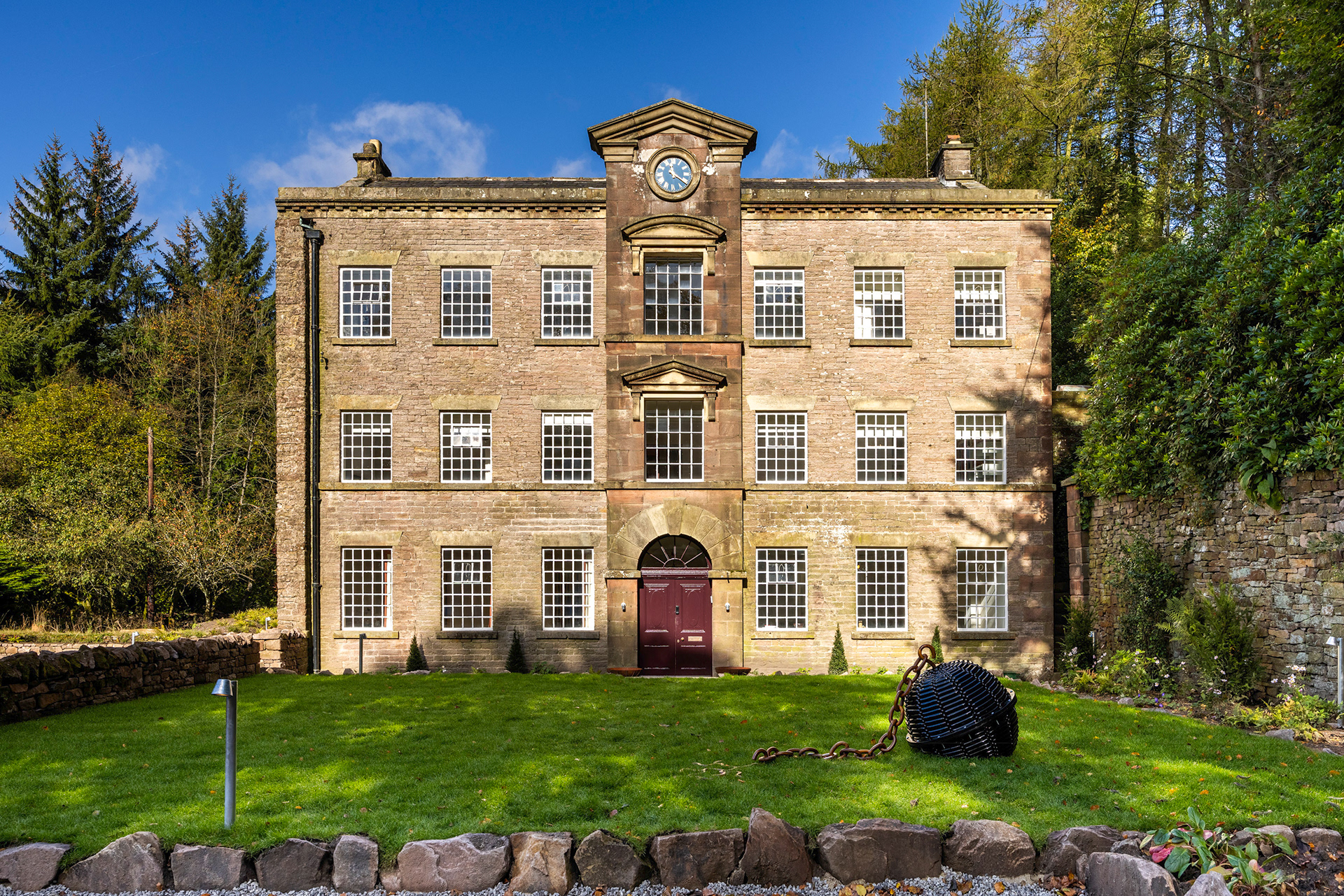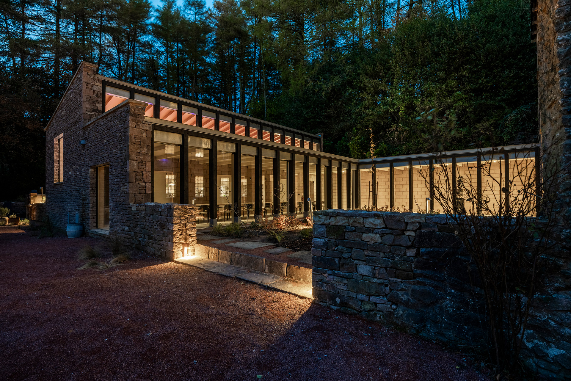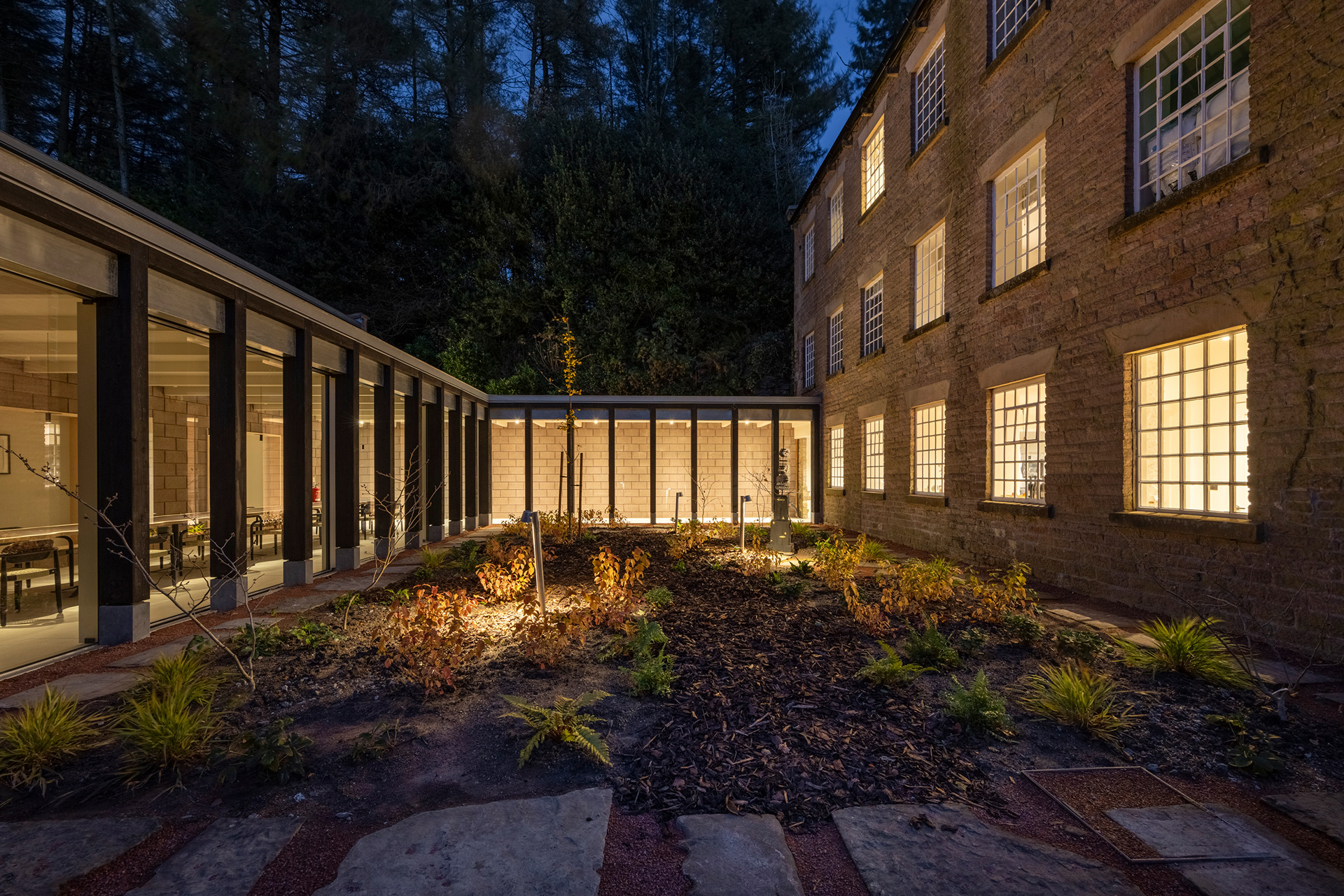 Filmmaking and photography of the meticulously restored former printworks in the heart of the Peak District with a striking contemporary extension. ARC Peaks is designed to host large groups of 30 people for wellness retreats.